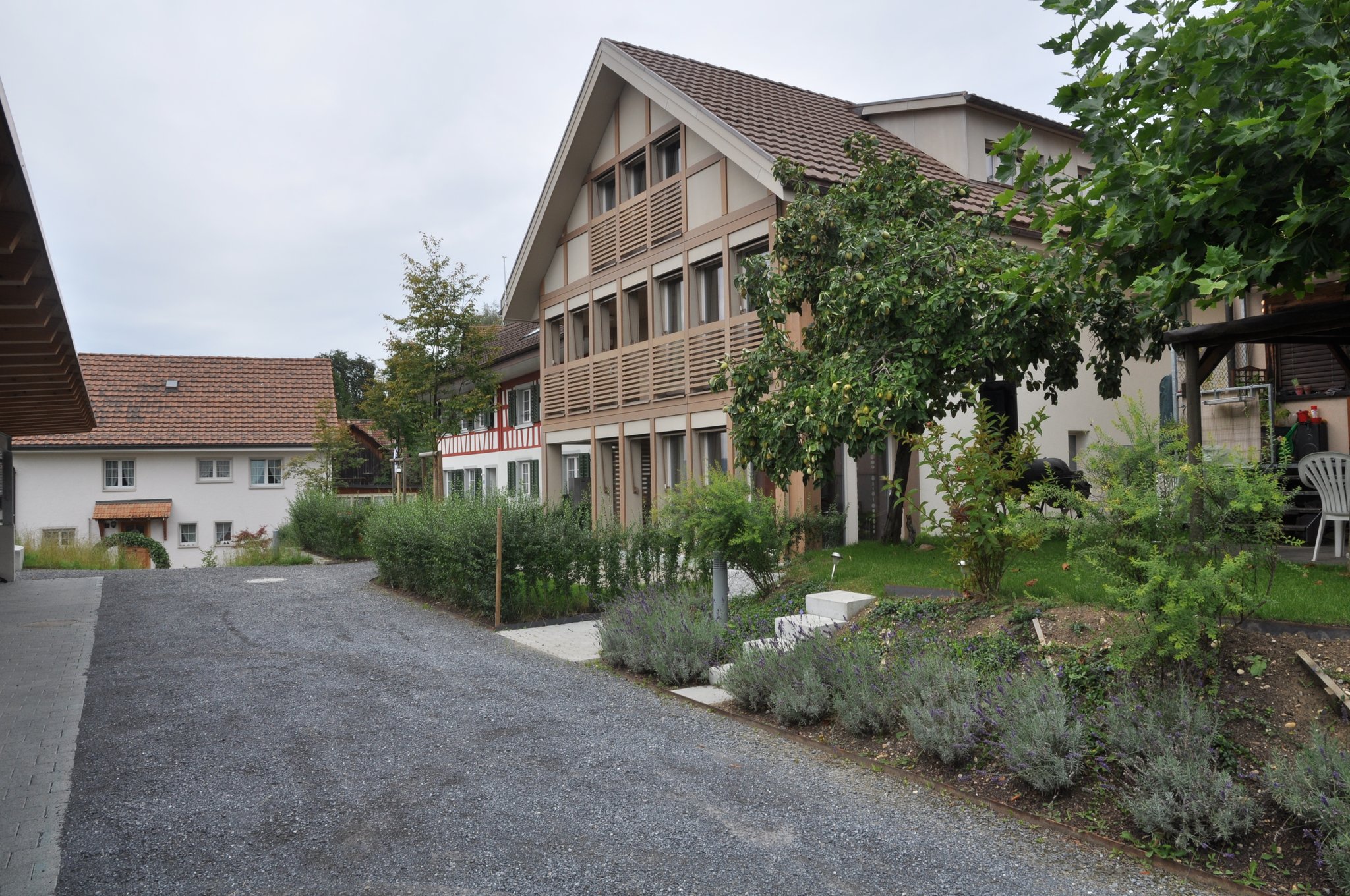 Neugestaltung der gesamten Umgebung mit offenem Carport